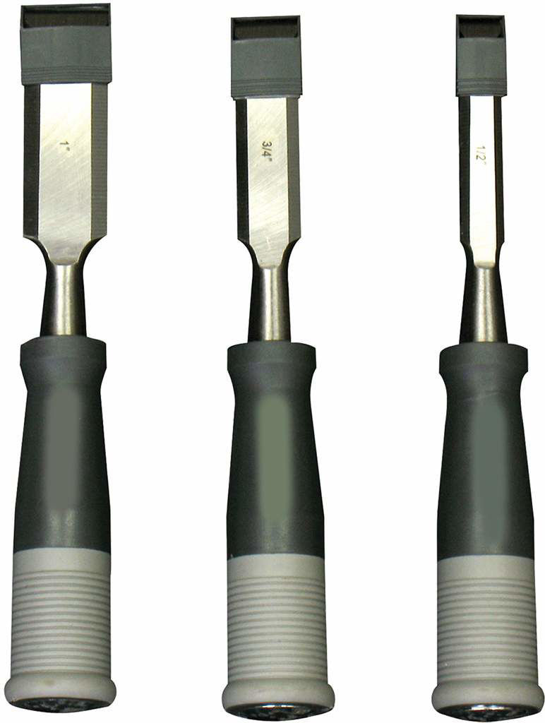 • 1/2in, 3/4in, 1in Chisels • Chrome vanadium steel • Soft rubber grip handle
