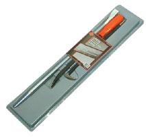 • 24” round shank black finished pry bar • 18” curved pry bar with fluorescent orange screwdriver - type handle • 12” round shank chrome pinch bar • double blister