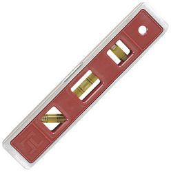 • die-cast aluminum frame • computer machined leveling surface • comes with full length recessed magnetic edge • large top-reading window • ABS plastic vial covers • V-groove for conduit & pipe • 3 easy-to-read vials for level, plumb and 45°