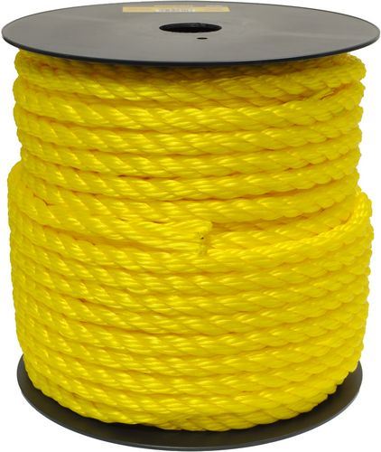 • 100% Polypropylene • Resists rot, acid and mildew • Waterproof • Twisted poly rope • 5.5 kg / roll • WLL 1666 lb, BS 5000 lb