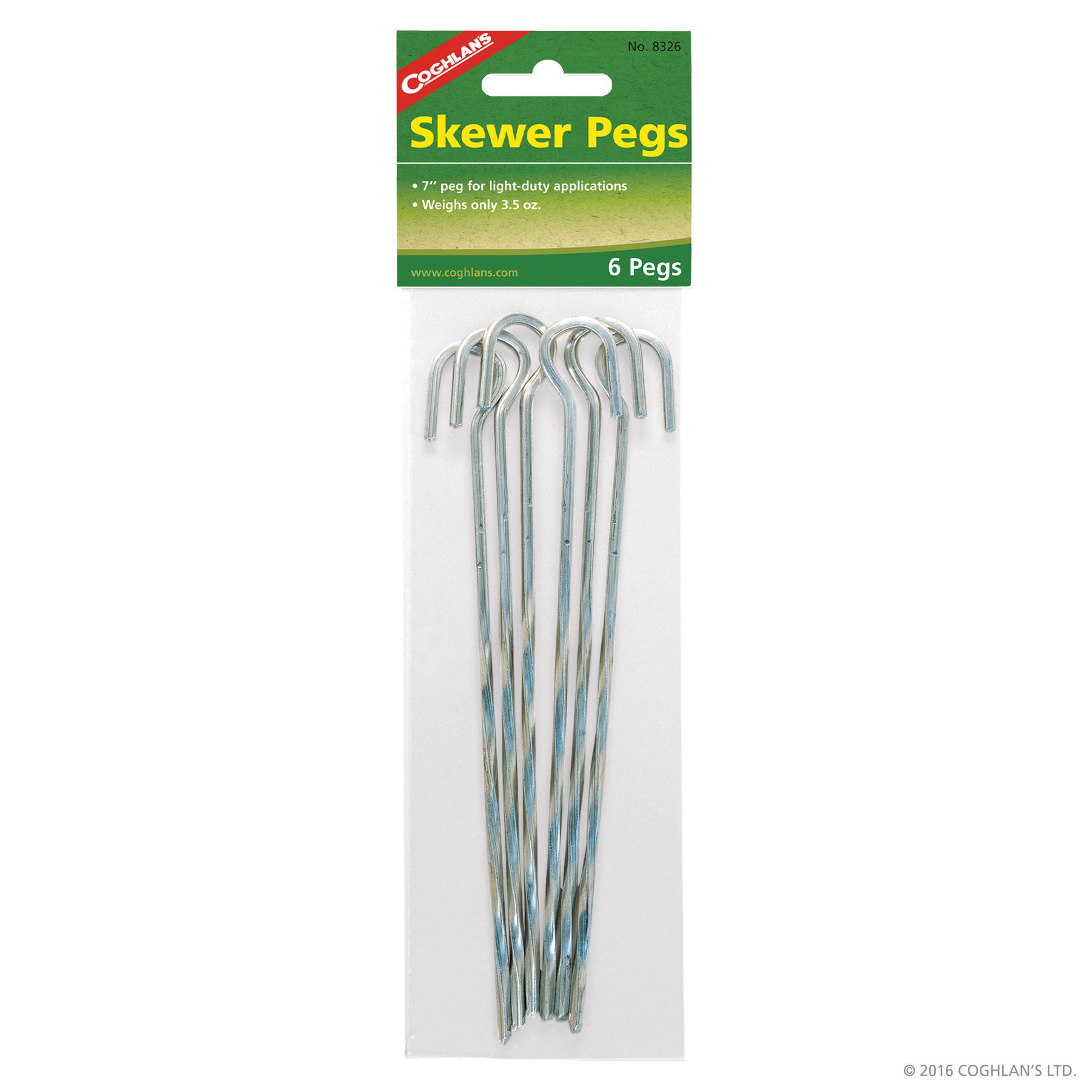 7 inch steel skewer tent pegs including a twisted square steel rod which provides improved holding power (in a 6-pack).