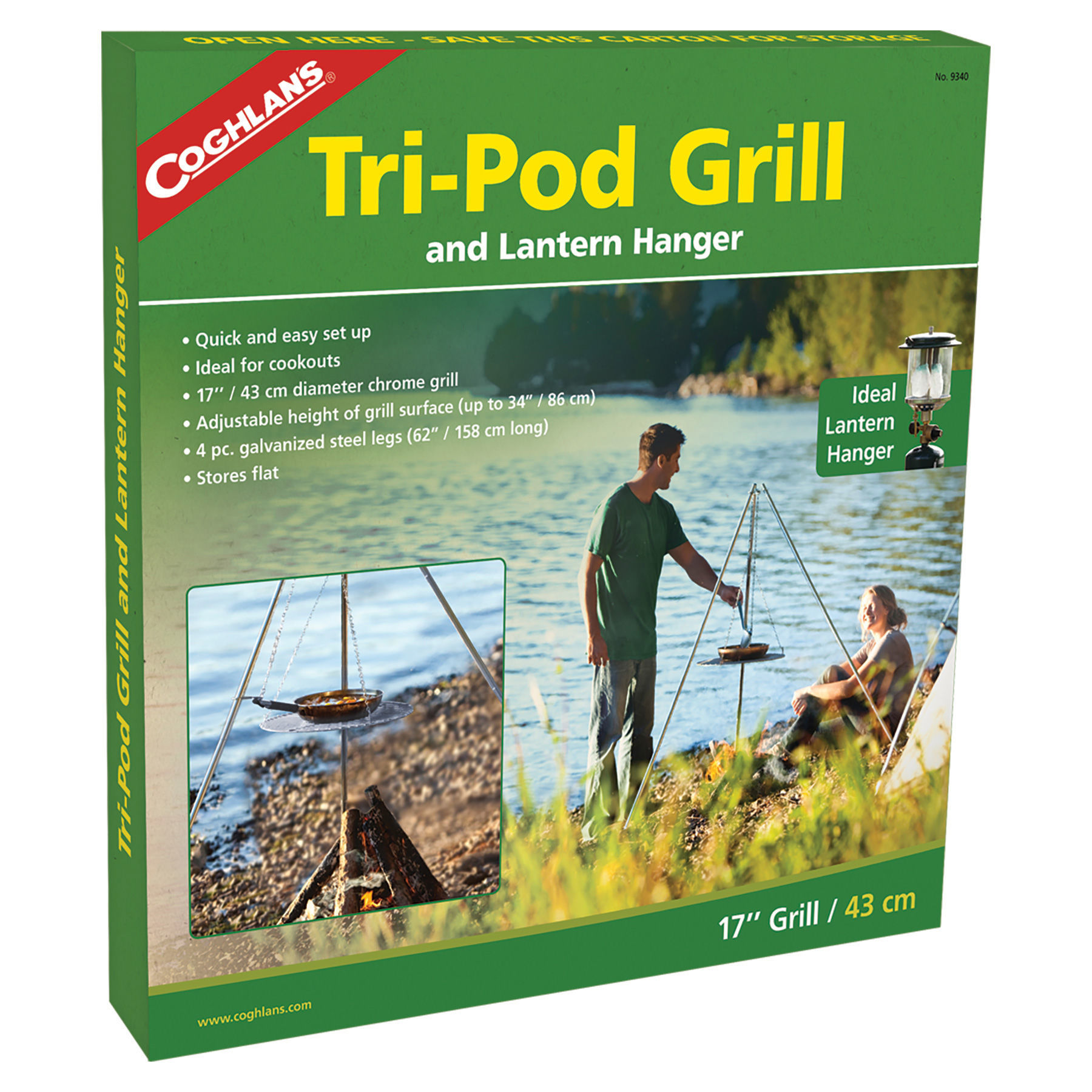 Ideal for cookouts, this grill can be placed anywhere. Its stable, height adjustable nickel-plated grill surface is supported by a 4 piece galvanized steel tri-pod. The legs separate and collapse for easy storage.